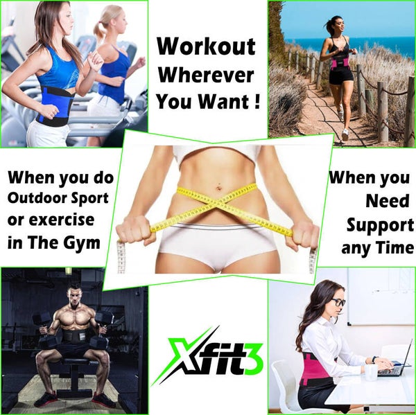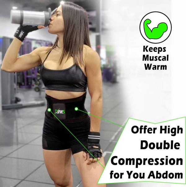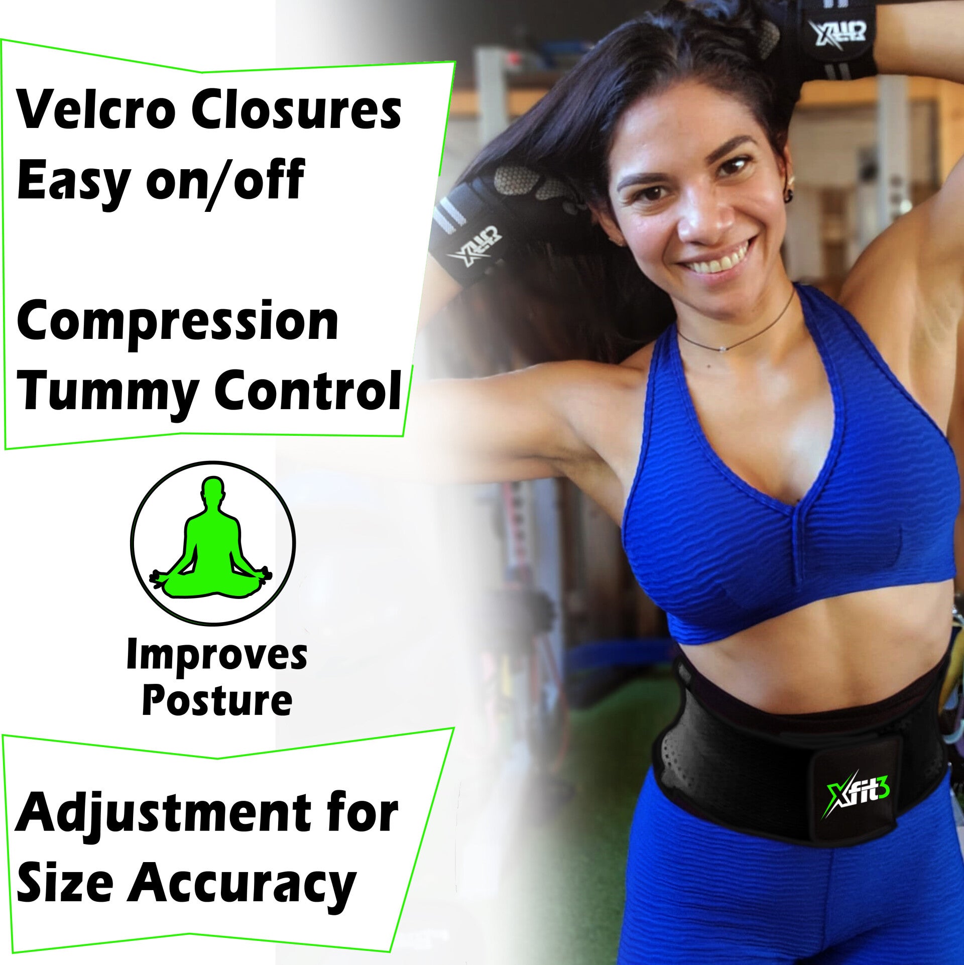 • ►► TUMMY TUCK & BACK SUPPORT XFIT3. Our best waist trimmer belt is very stretchy in the right places and provides tons of support on your sides and back. Provides instant abdominal compression and lumbar support. The slimming waist cincher does not dig into your skin and lays flat all the way around. If you have lower back issues, our waist trainers, like a compression binder around the waist to offer lumbar support ,help relieve pain and improve posture